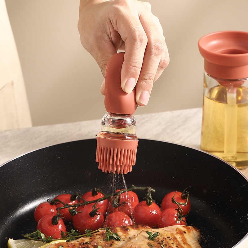 Oil brushed with bottle one-piece dust oil brushed bottle kitchen silica gel high temperature resistant food supplies grade knead oil storage metering