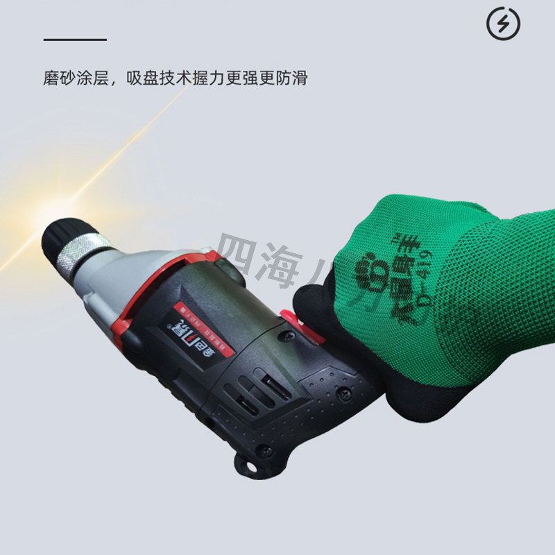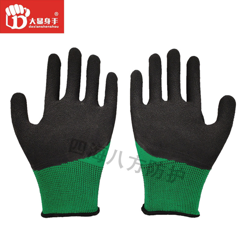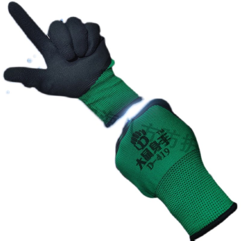 Show your skills D419 foam gloves green line black glue breathable comfortable wear-resistant non-slip dipped labor insurance site work