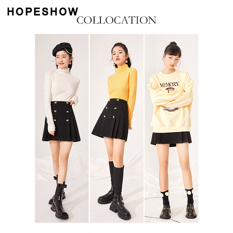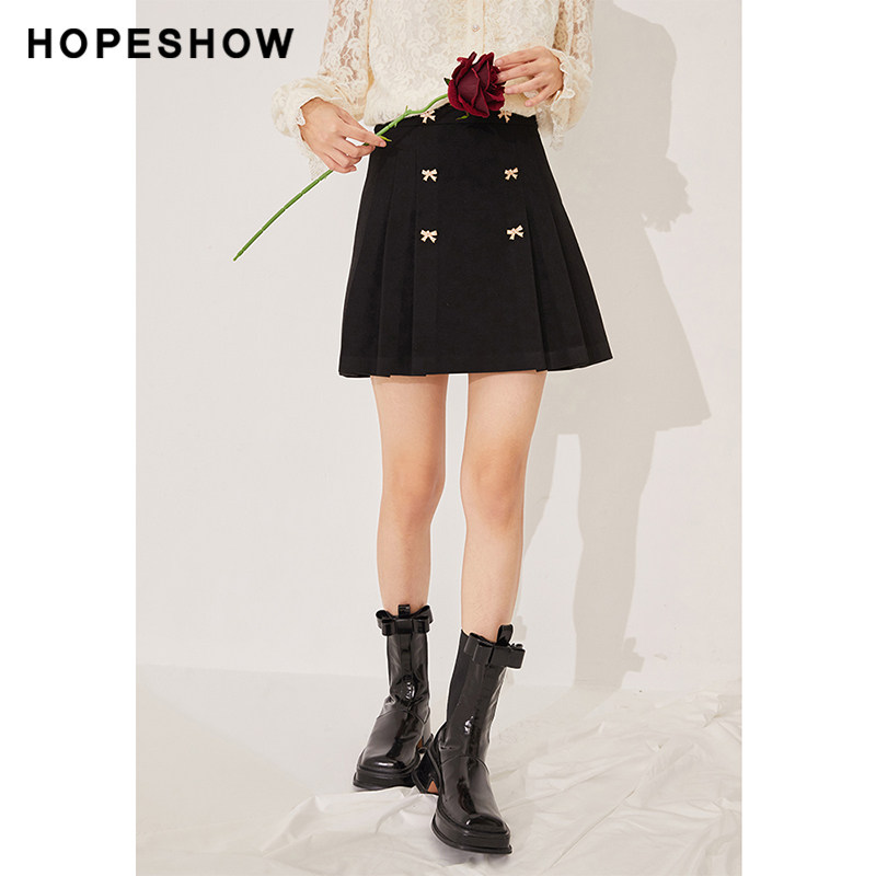 Red sleeve bow black skirt winter 2021 new women's sparkling sweet slim A pleated skirt