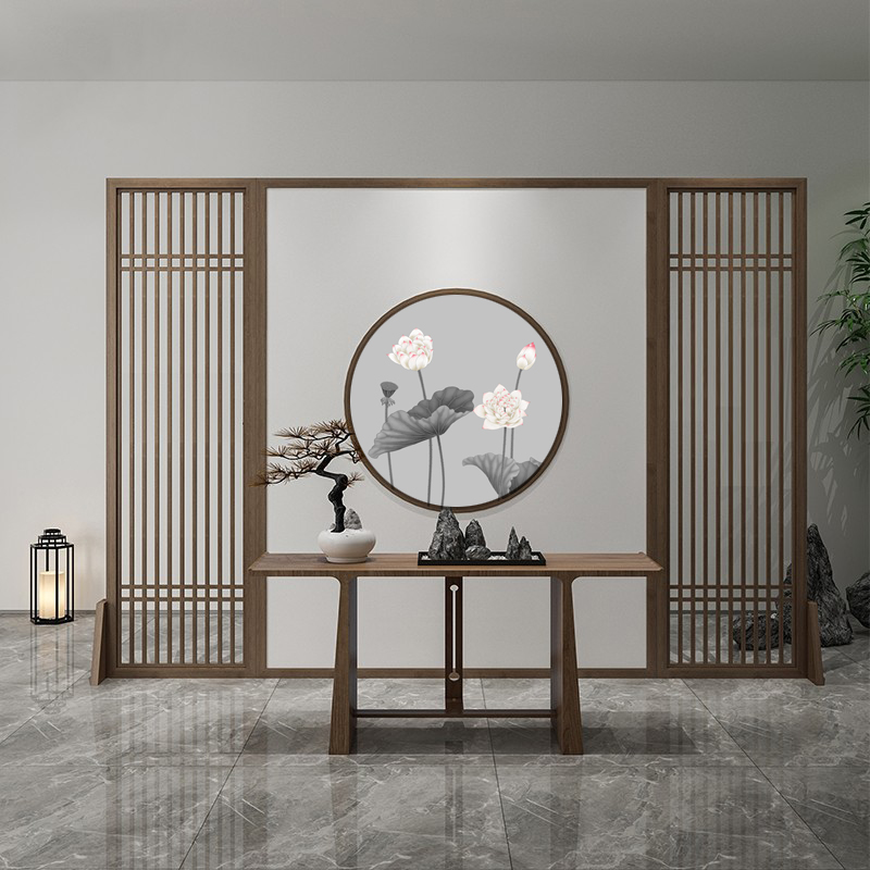New Chinese Villa Screen Living-room Hotel Partition Wall Xuanguan Solid Wood Decorative Landscape Shelter Custom Large Base Screen