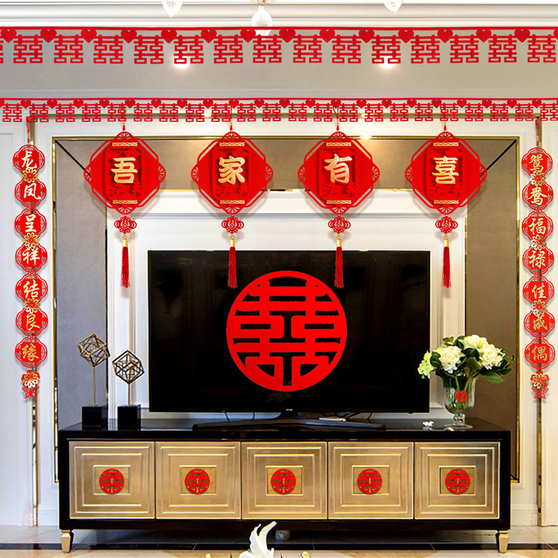 Happy Calligraphy Hanging Living-room Pendant Laflower Wedding Wedding Wedding Decoration Corridor New House Wedding Arrangement Decorated Wedding items