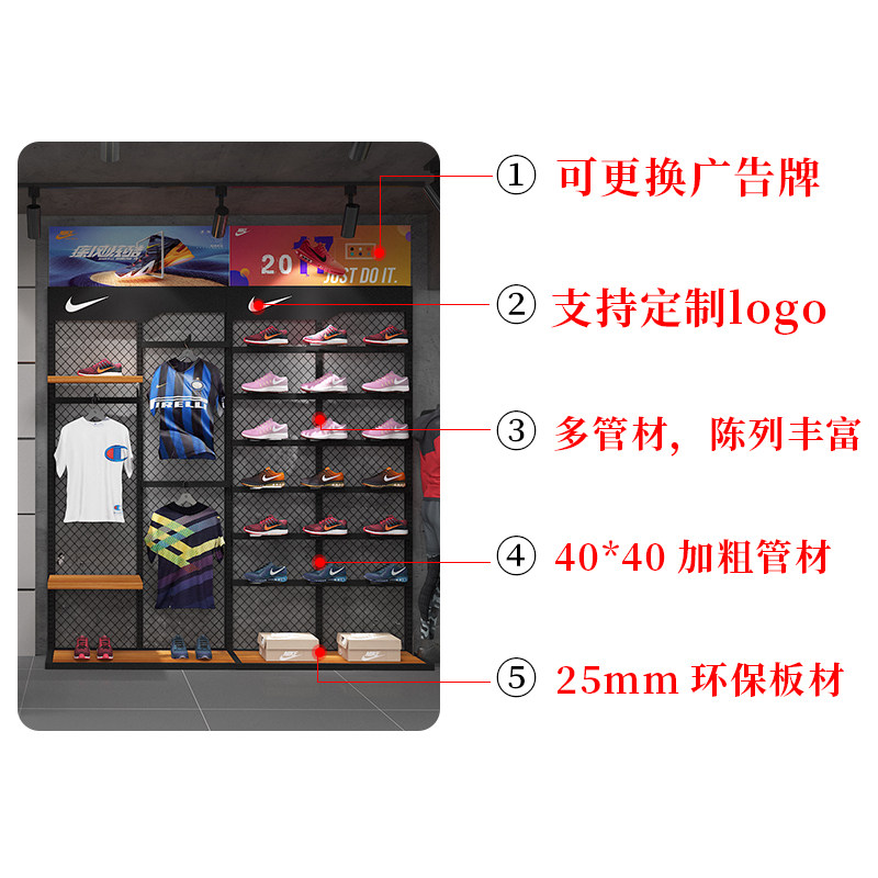 Shopping mall shoe store shoe rack clothing store display rack display rack on the wall showcase shoe rack shop sports shoe rack