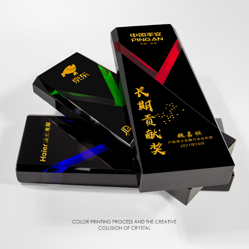 High-end Glazed Trophy Custom Black Crystal Medal Creative Victory V Styling Order for Corporate Annual Meeting Awards-Taobao