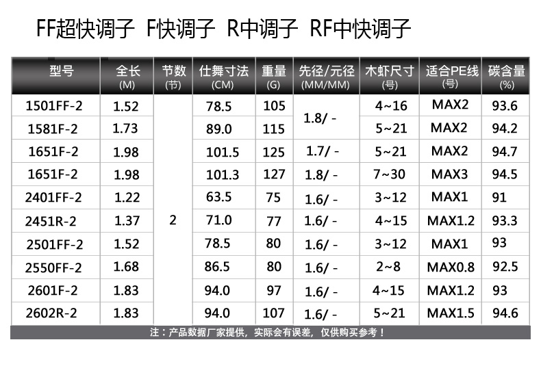 1 52m handle 1501FF-2 1 73m handle 1581F-2 1 98m handle 1651F-2 1 98m handle 1652R-2