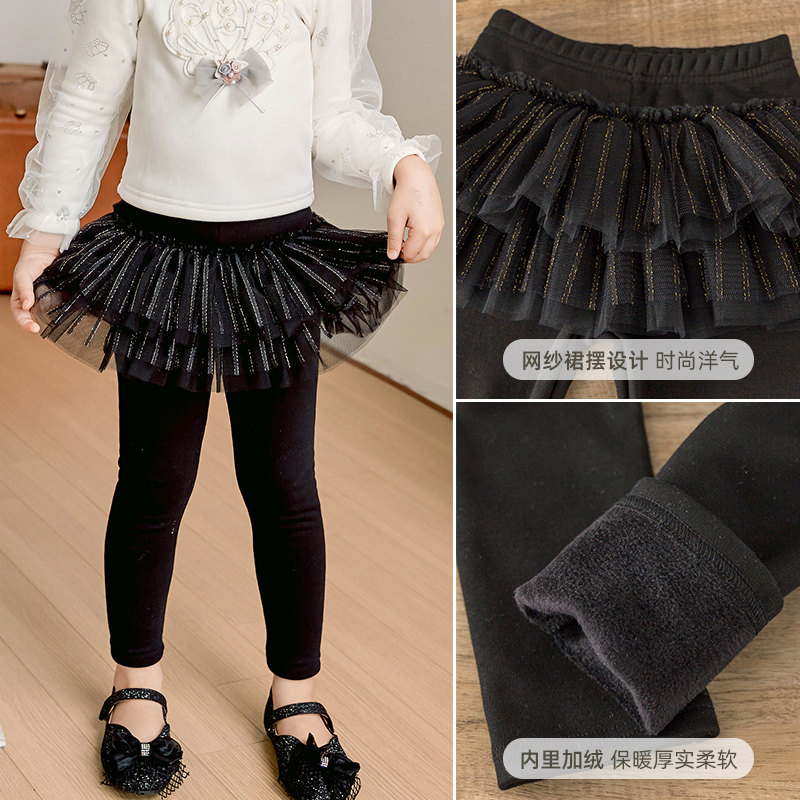 Boat Rat Girl Inside Lap Pants Skirt Autumn Winter Plus Suede Thickened Black Foreign Pie Children Pants Fake Two Women Baby Skirt Pants