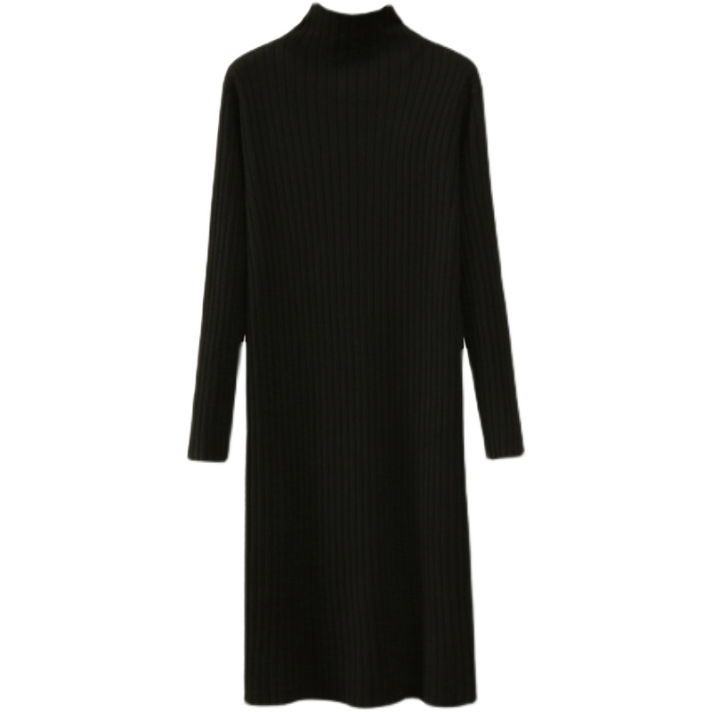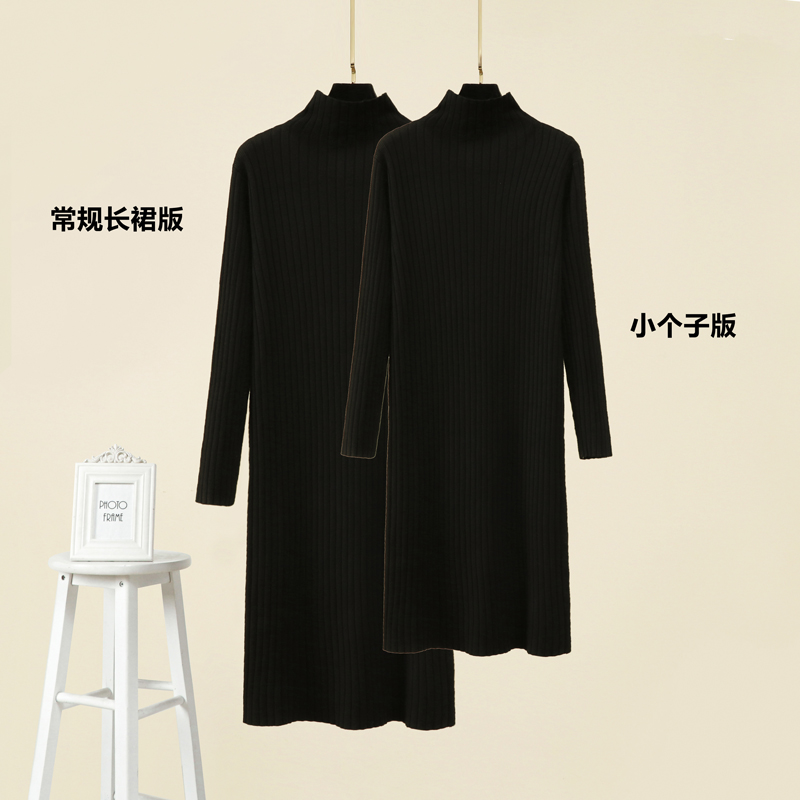Knitted one-piece dress female fit large coat autumn and winter small inner lap long dress sweaters bottom medium long sweater dress black-Taobao