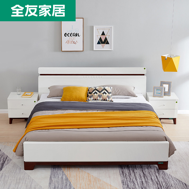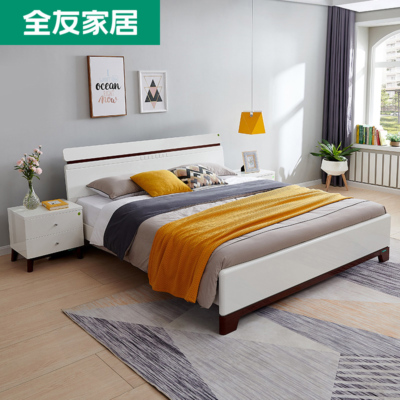 Furniture 121803 - Furnished Furniture for All Friends Double Bed Modern Simple Bedroom Plate Bed Closet