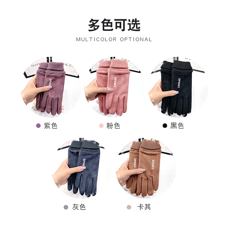 Women's Suede Suede Gloves All Finger-Romouth-Purple Lady Suede Gloves All Finger-Romouth-Light Blue Women's Suede Gloves All Finger-Romouth-Hidden Green Lady Suede suede gloves All-finger-Roostomy
