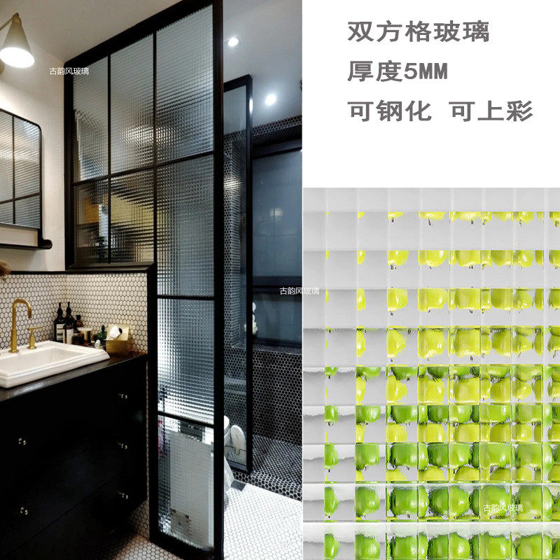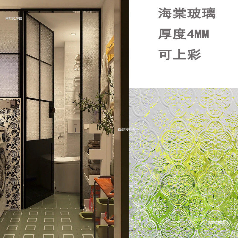 Super white steel grain glass taped stone stained stained flower art glass bathroom door sequence customization