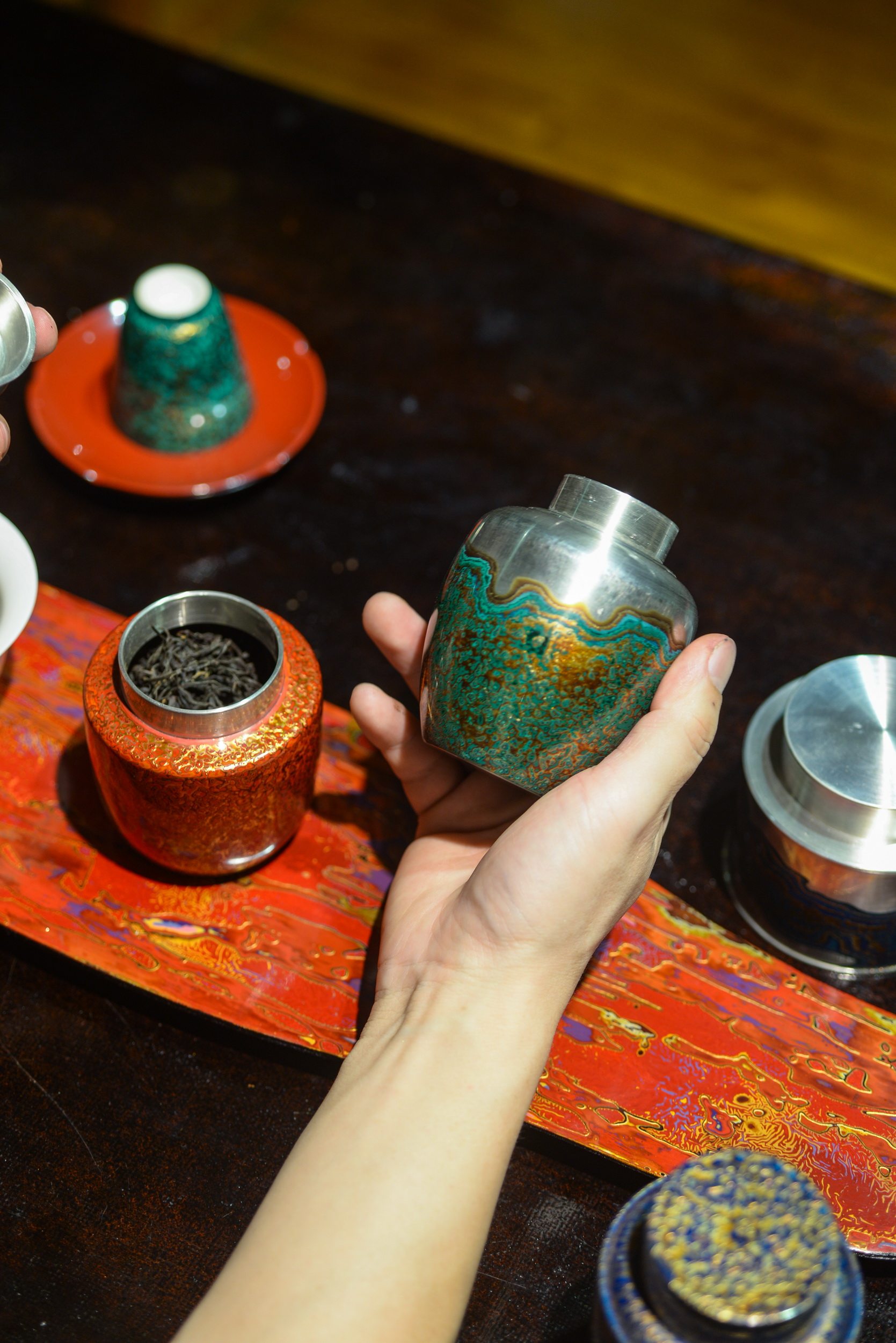 Large lacquer pure tin cans, tea cans, Chinese-style metal non-legacy lacquerware, rhino leather lacquer, handmade tinware