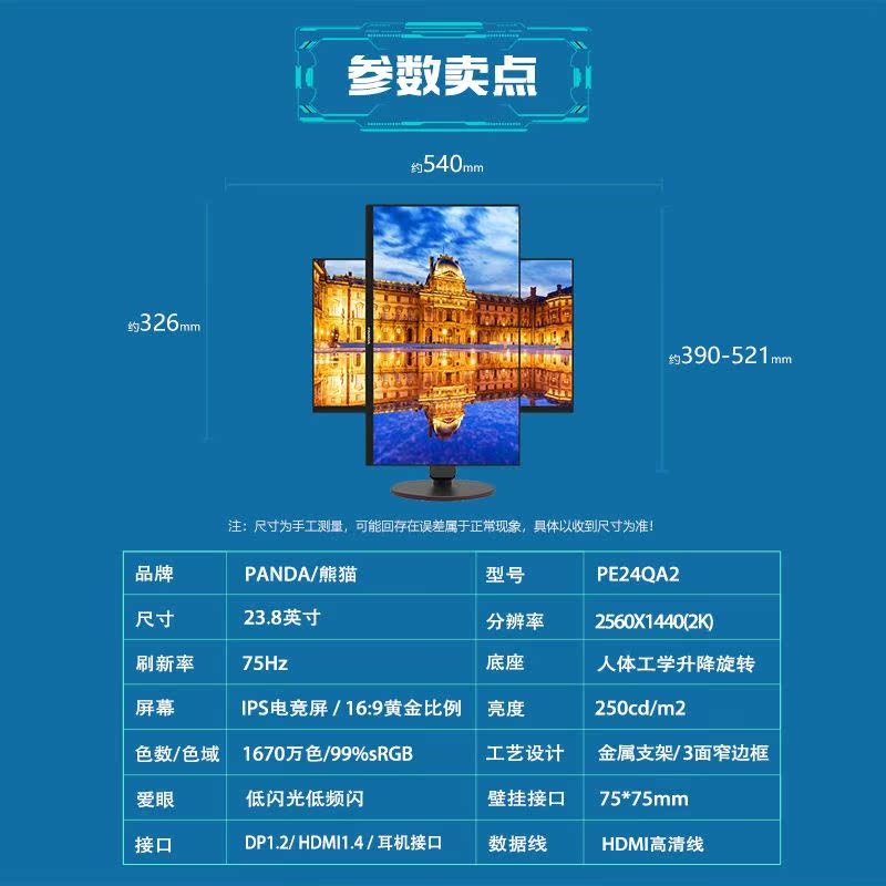 PANDA Panda 23 8-inch 2K screen IPS computer monitor 75 wide viewing angle lifting and rotating PE24QA2