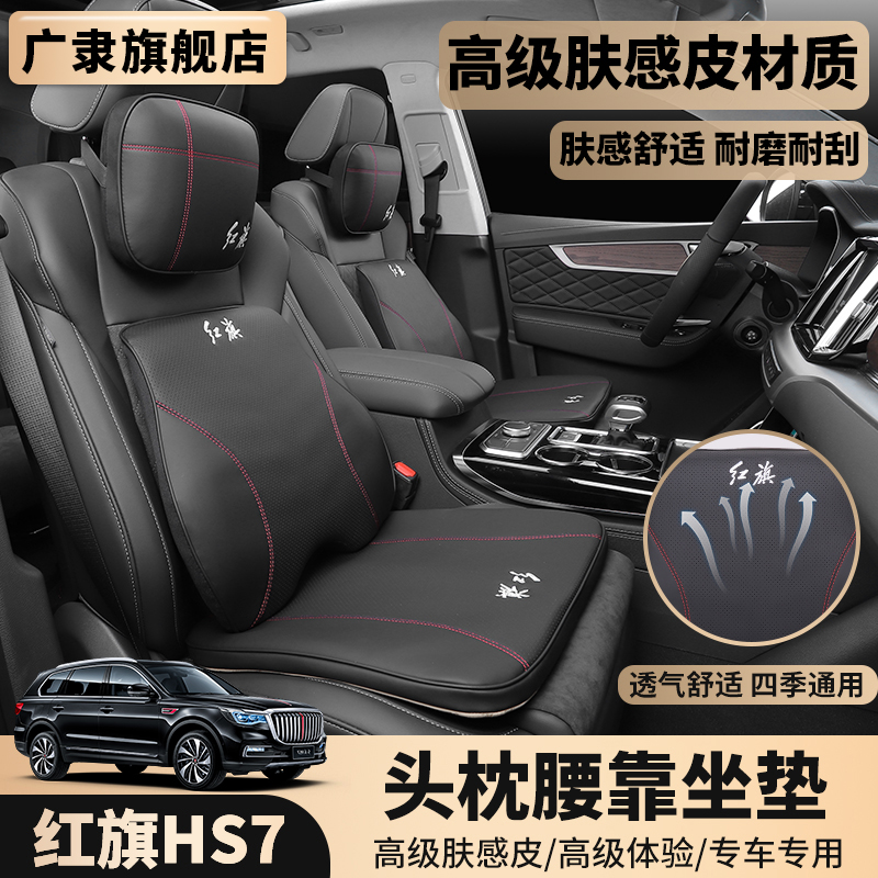Skin-sensitive leather headrest-black red line-red flag-single loaded-red flag HS7 special skin-feeling leather headrest-black white line-red flag-single loaded-red flag HS7 special skin-sensitive leather waist rests -