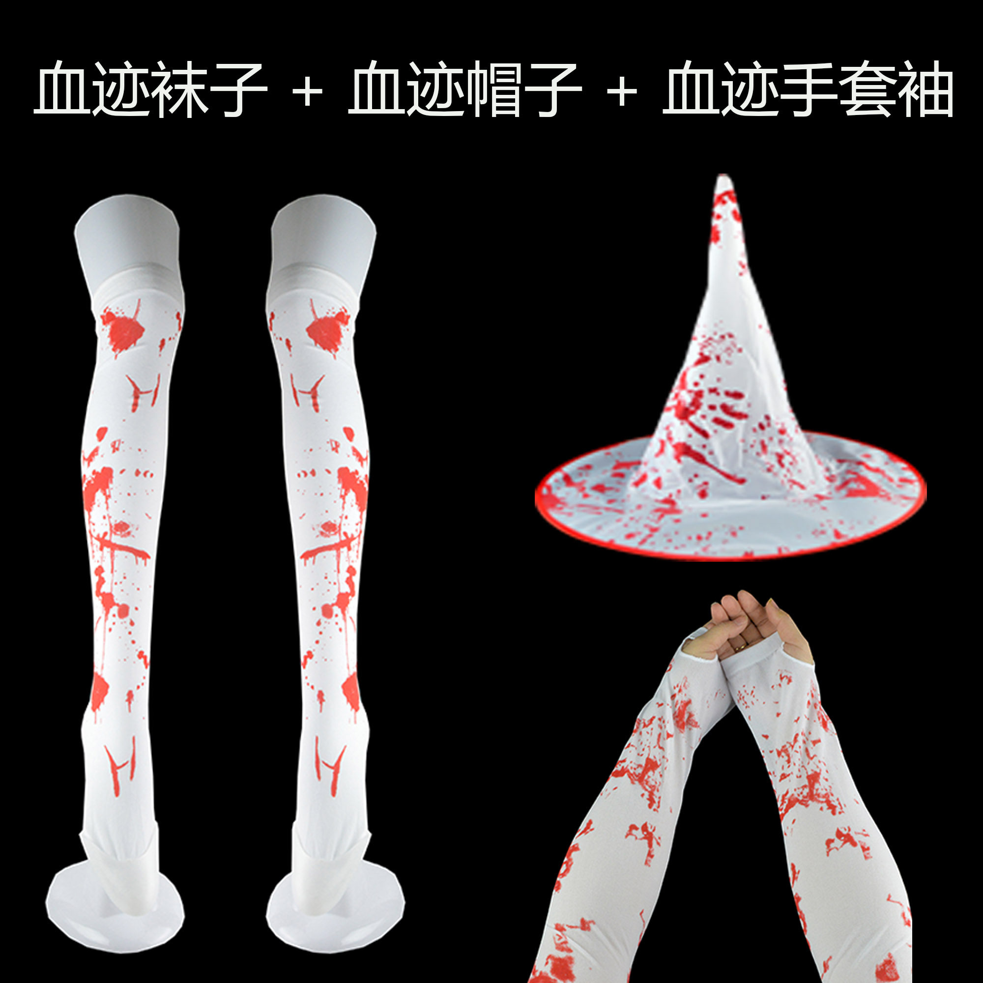 White Blood Trail Long Silo Socks White Blood Witch Hat White Blood Stains Gloves Sleeves Blood Stains Hat Socks Gloves