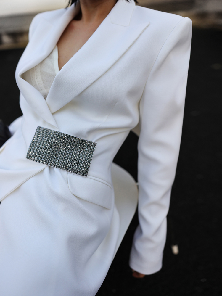 Boss Z 1800 rhinestones bling bright eyes autumn and winter slim long wool minimalist long-sleeved suit women