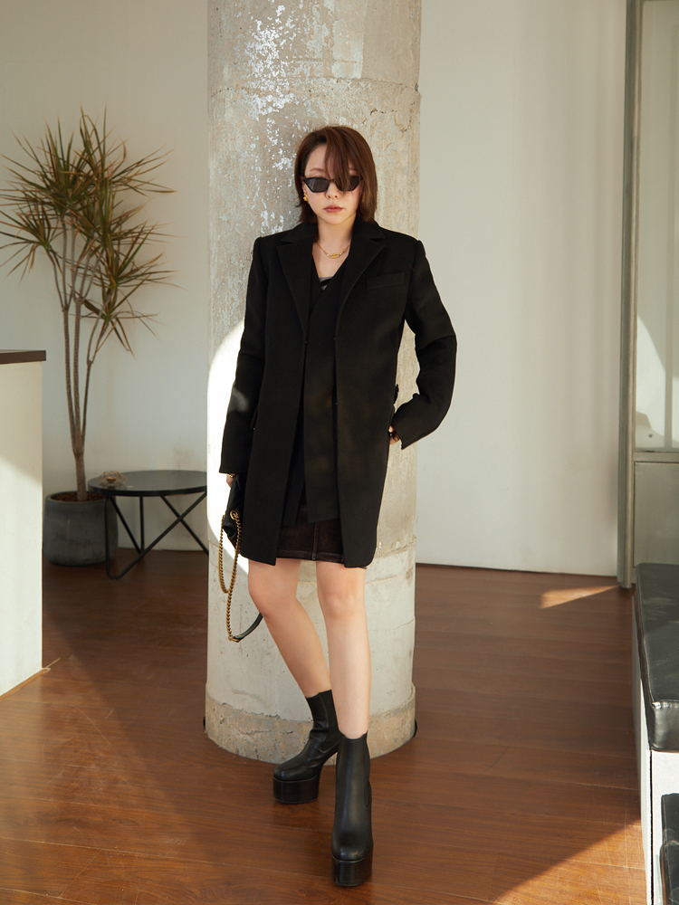 Boss Z handsome fake two-piece layered vest suit cashmere jacket mid-length straight wool coat