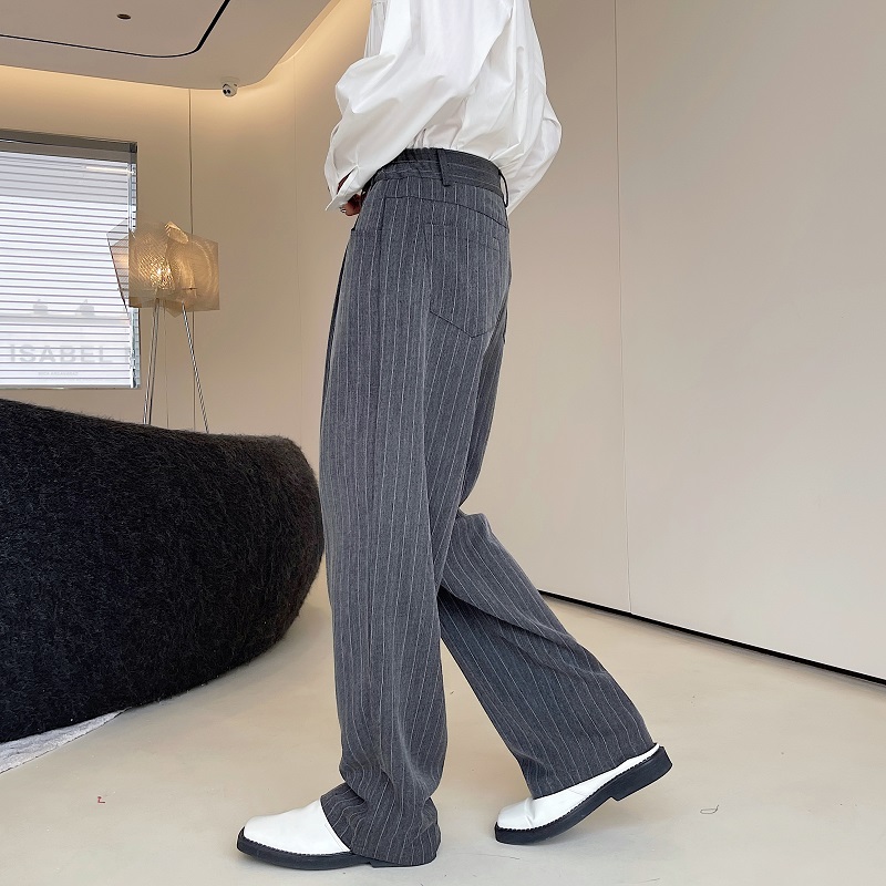 Autumn and winter light luxury striped trousers men's gentle anti-wrinkle skin-friendly straight-leg pants trend solid color all-match casual pants loose and handsome