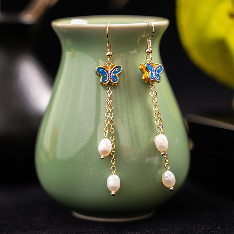Ancient style jade earrings Hanfu ear clips without ear holes female long version simple earrings nails national style retro niche classical