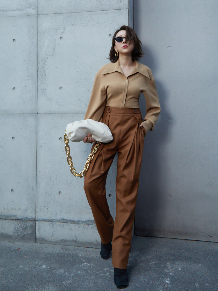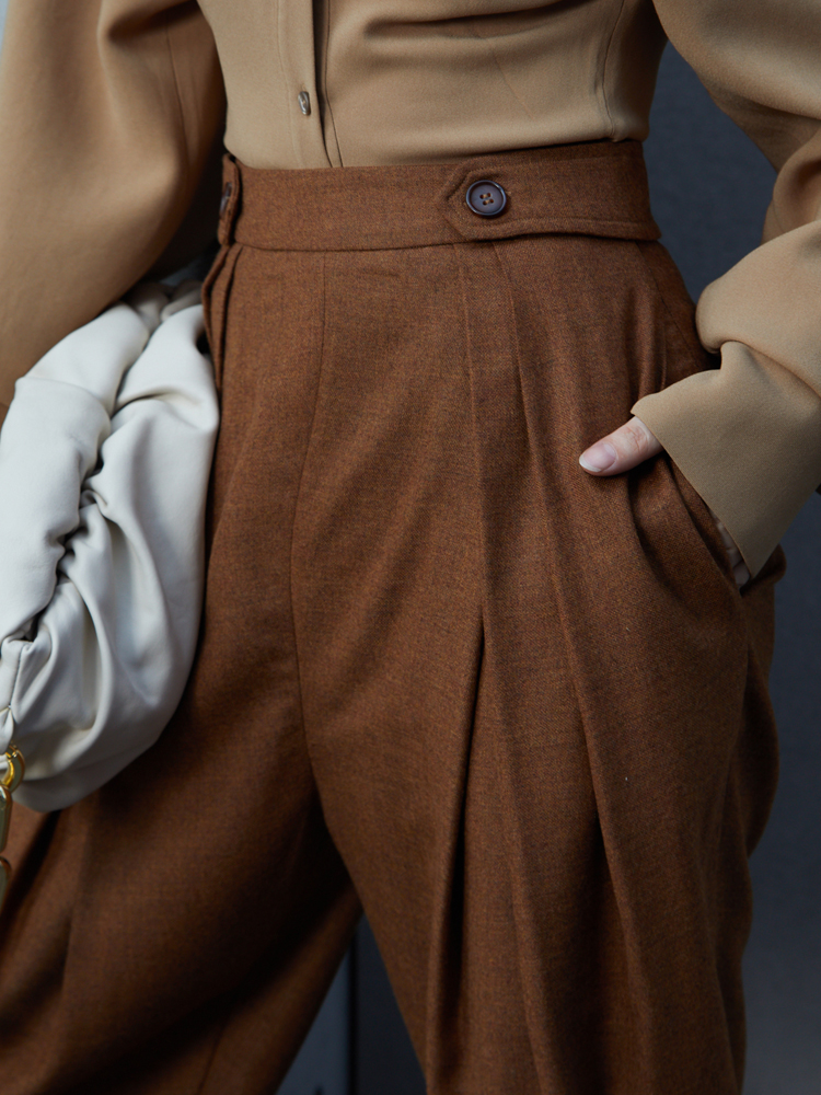 Boss Z British retro mixed-color wool trousers multi-fold tapered all-match extravagant breeches casual trousers women