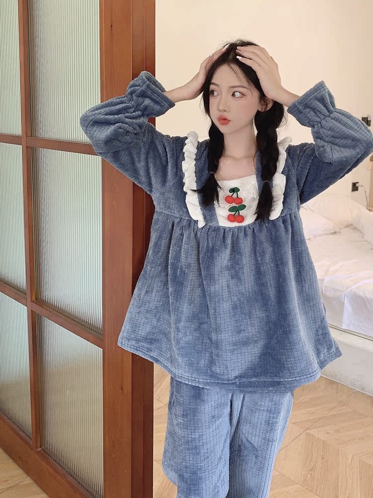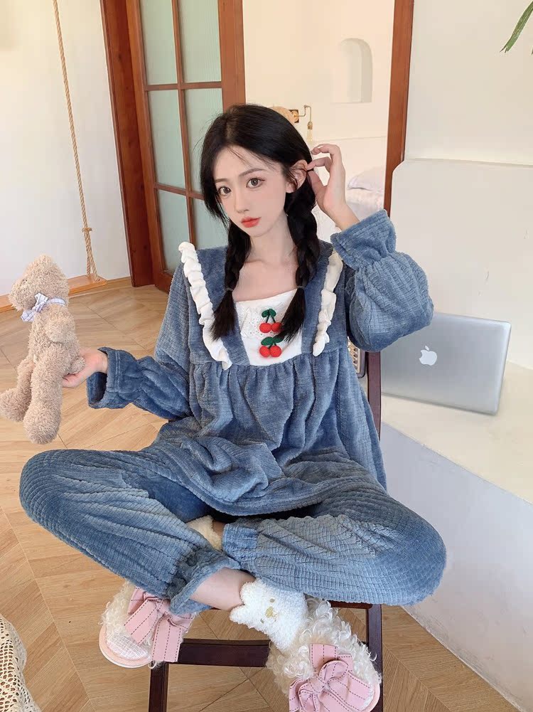 Milk sweet girl's heart ~ Walking incense Fragrant Son Sleeping Girl Winter Princess Wind Coral Suede Sweet and lovely home clothes