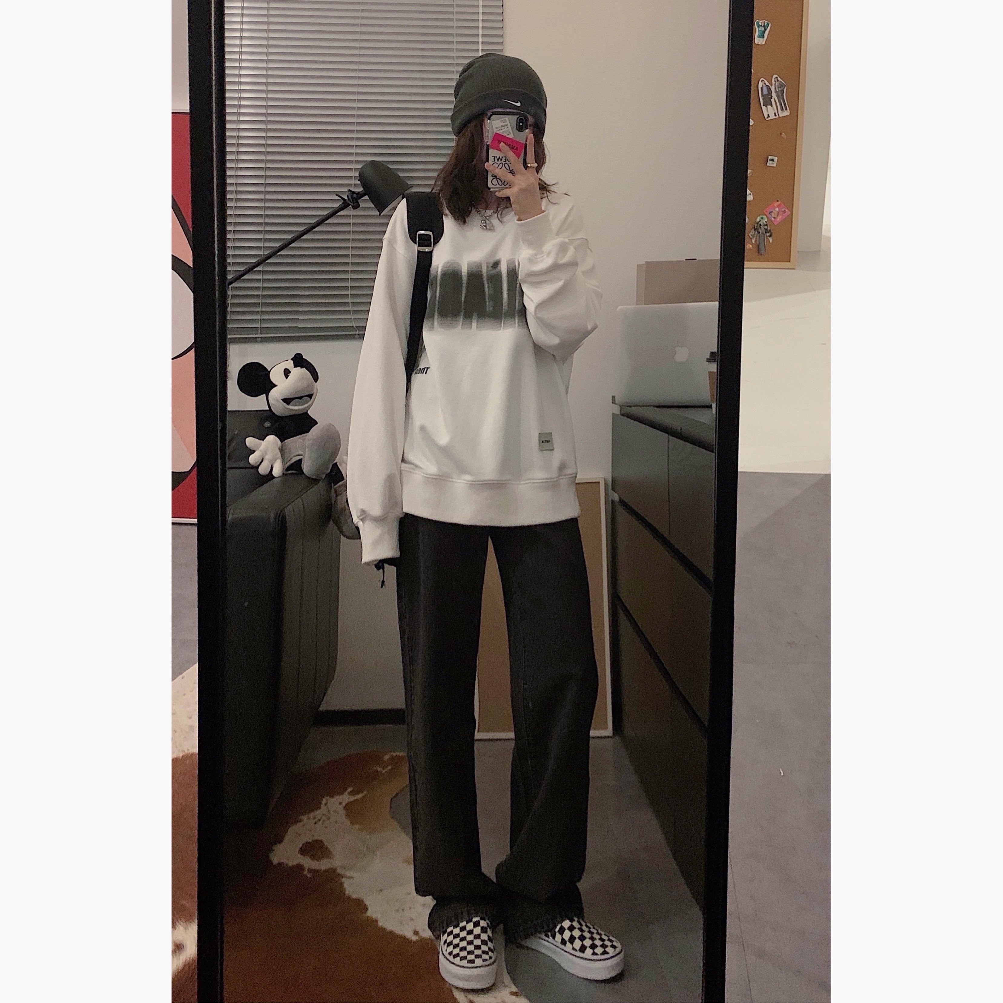viiwen denim is yyds black and gray classic all-match thin, high-waisted straight-leg wide-leg jeans