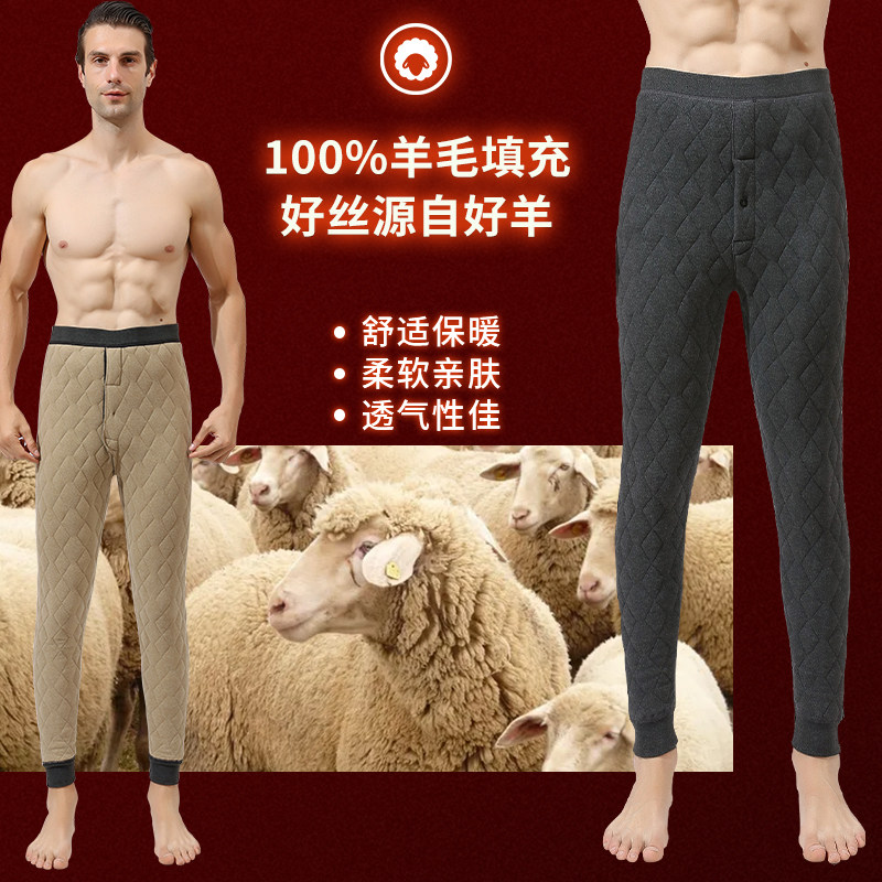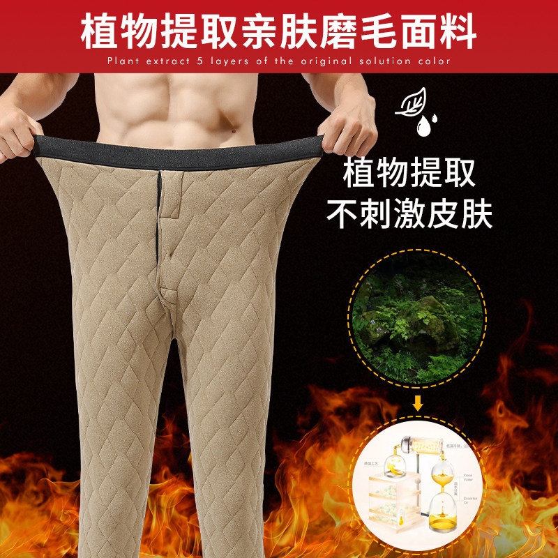 Men's wool warm pants in winter with velvety thickened high waist elastic cotton pants Northeastern Tthicker ultra-thick inner lap pants