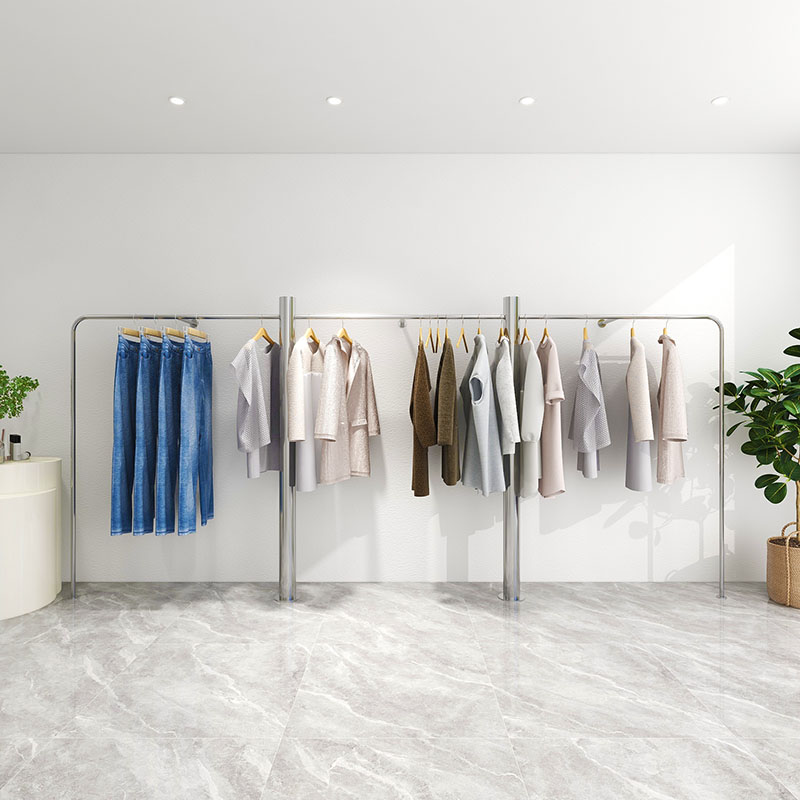 Inky Women's clothes shop Stainless Steel Wire Drawing Show Shelves Landing Rack Hanger Shelves Hanging Clothes Poles Wall-mounted Side Hanging