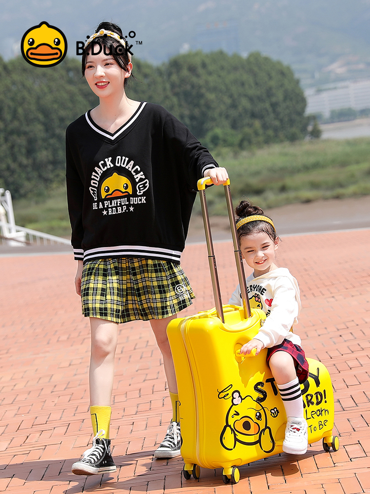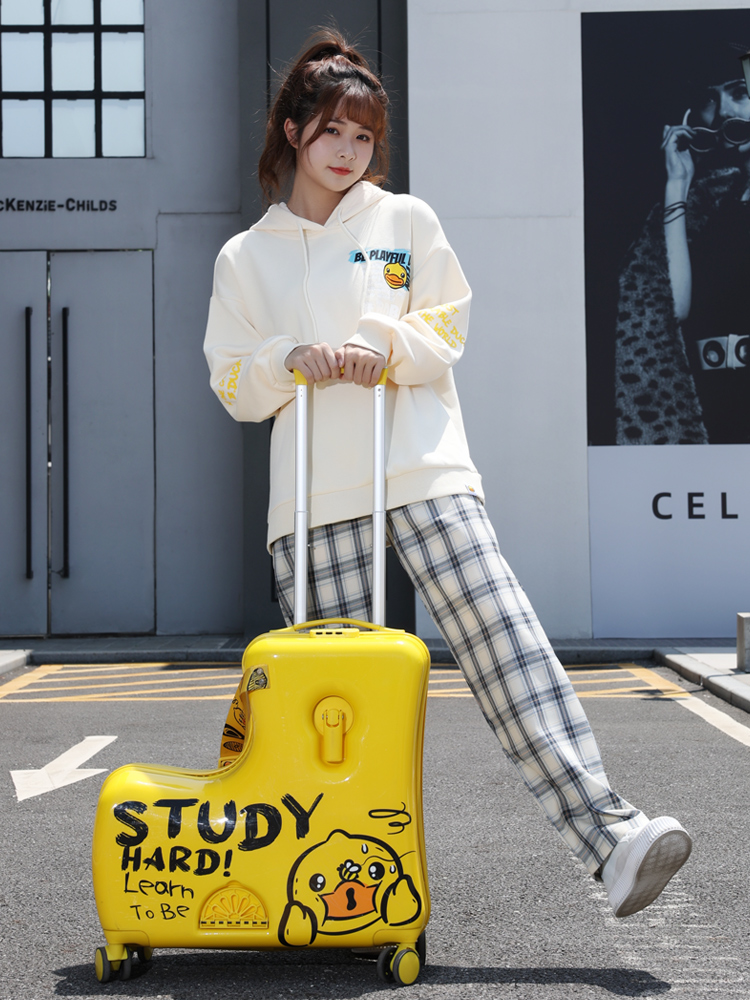 B duck little yellow duck children's luggage boy can sit and ride trolley box girl password box baby suitcase
