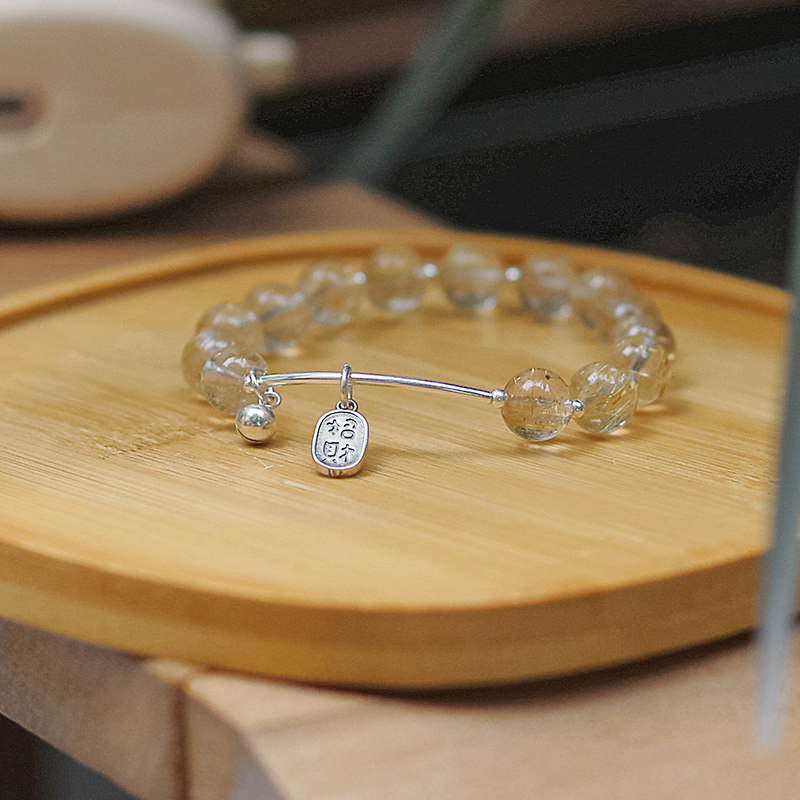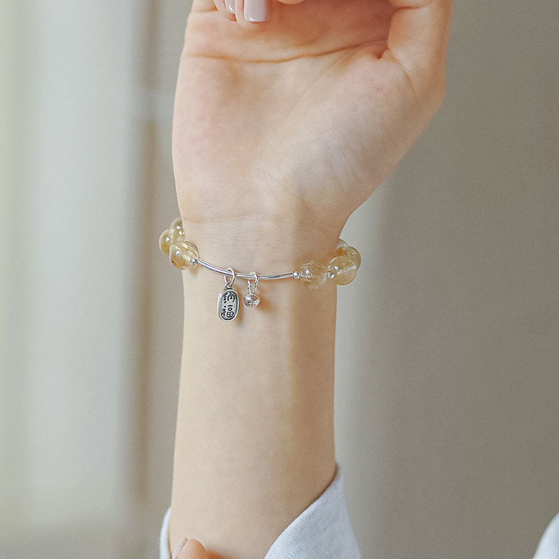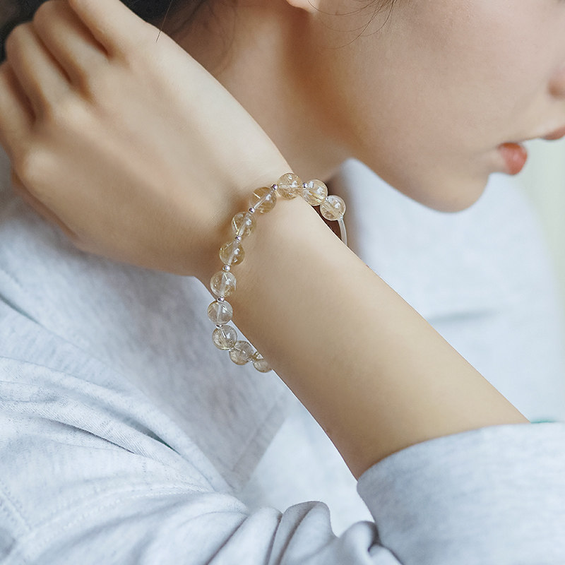 Original design blonde hand - haired girl cute DIY bells s925 silver jewelry natural yellow crystal string light luxury