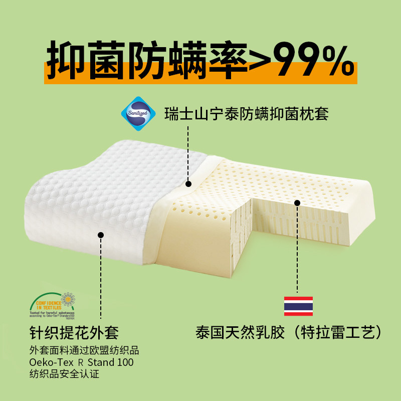 Terra Latex Pillow Thai Natural Rubber Pillow Care Cervical Spine Sleep Single Pillow Core Adults Home Silicone-Taobao