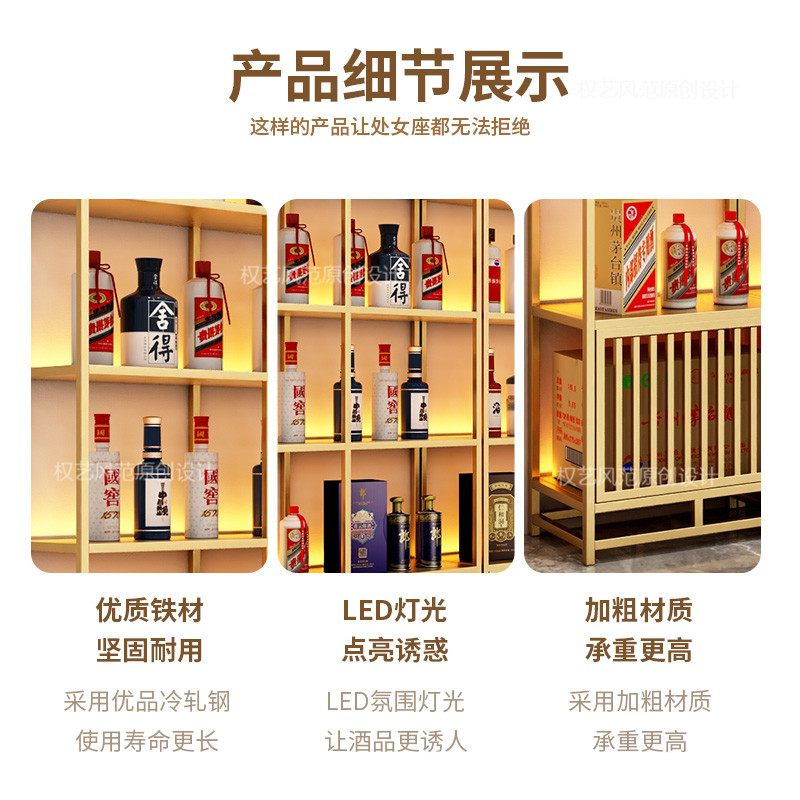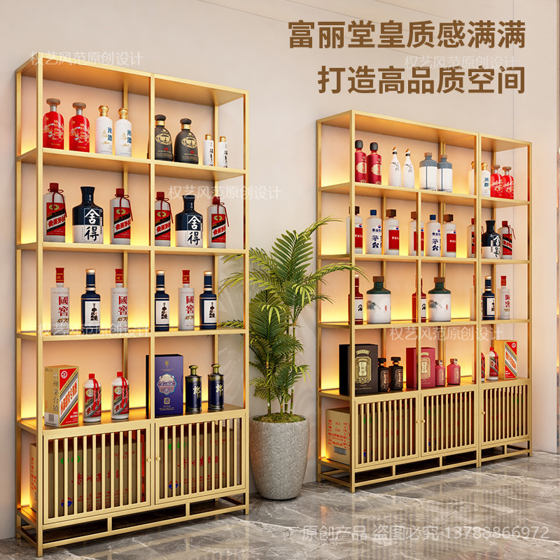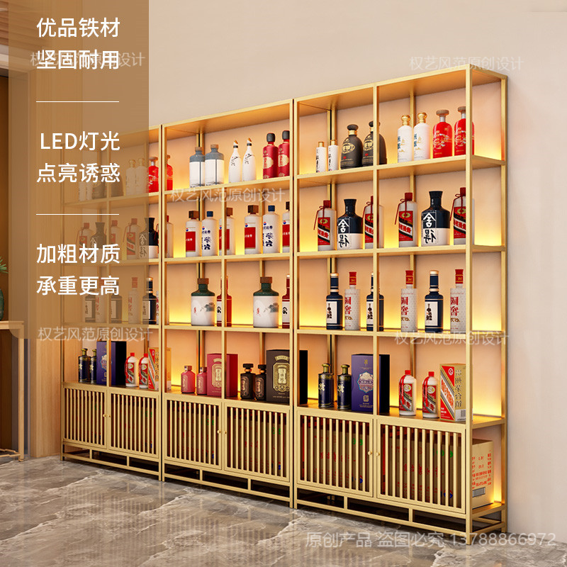 White Wine Cabinet Tea Cabinet Commercial Smoking Wine Exhibition Cabinet Liquor Display Cabinet Cashier Silver Counter Mix Custom Iron Art Display Shelf