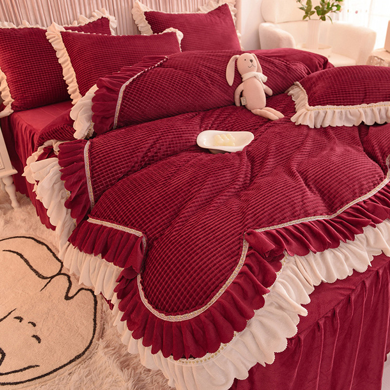 Winter high-grade milk velvet thickened four-piece baby velvet sheets double lace quilt cover bedding bedding