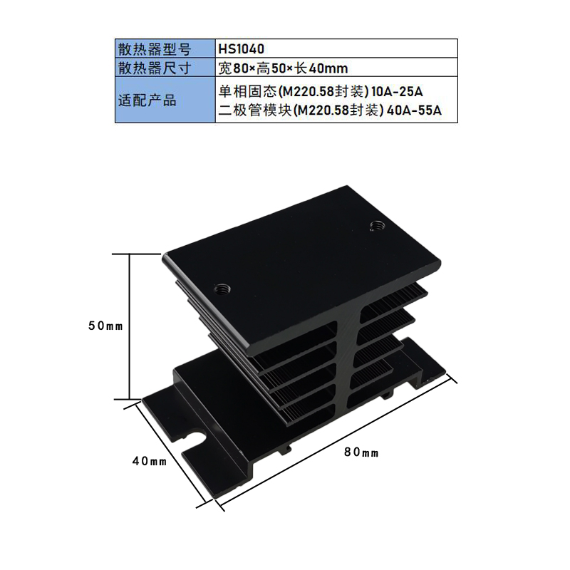 Single Phase Solid-state Relay Radiators HS1050HS1040 Base HS1025HS10100 Heat Sink Black
