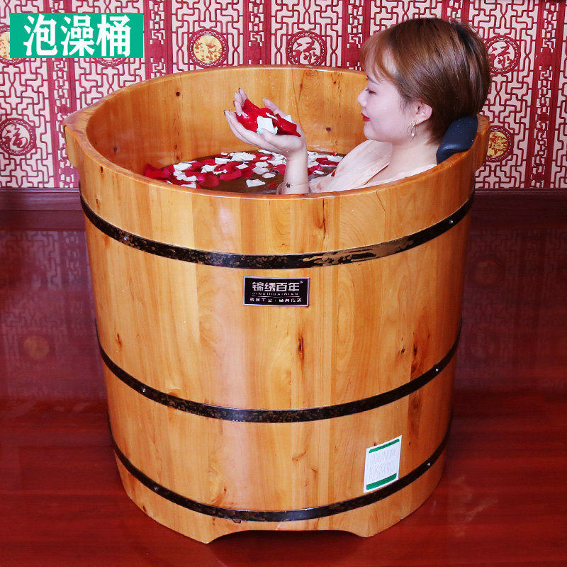 Solid wood round wooden barrel 68cm high children's adult bath tub cedar wood bathtub household bath barrel bath barrel