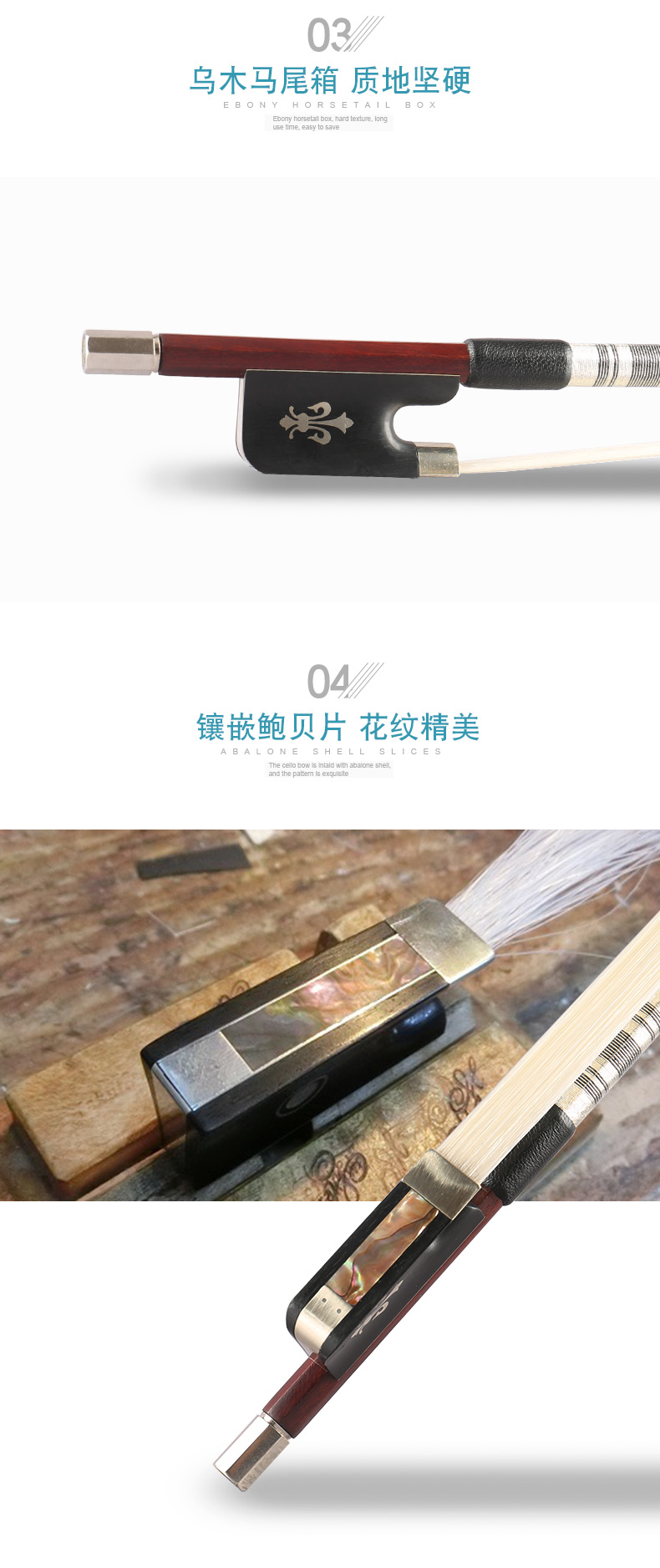 Green sandalwood white copper flower performance pure ponytail round Rod good elasticity 4 4 cello bow