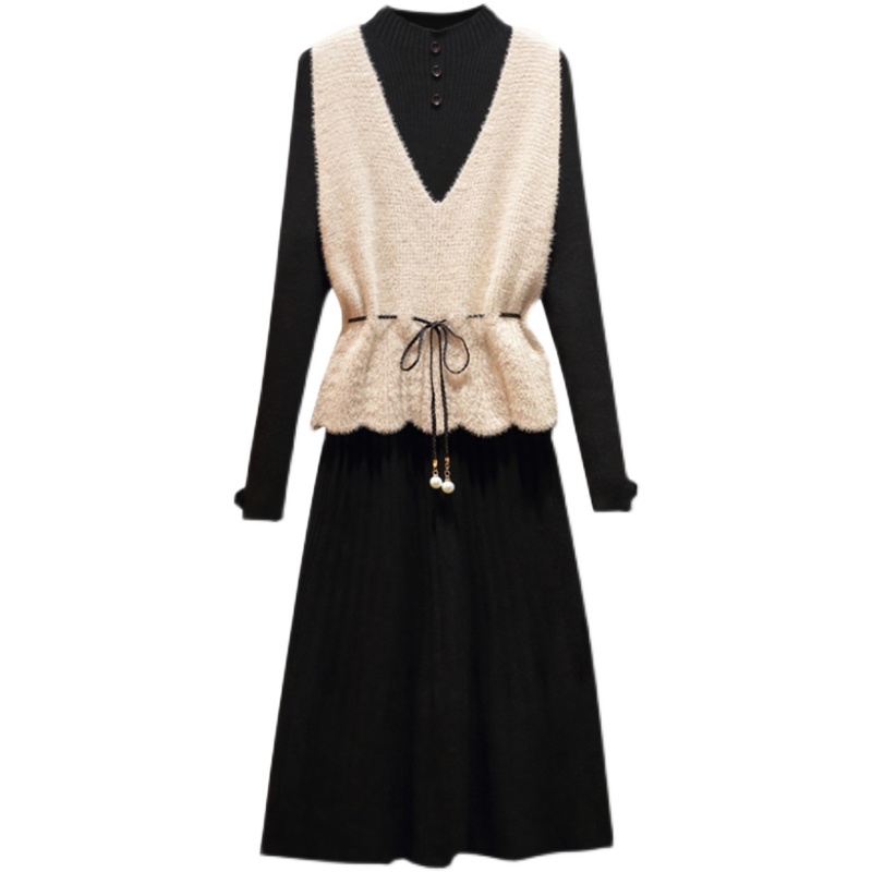 2022 Spring Autumn New Middle Ages Big Size Women Dress Fat Moms Fashion Interior Lap Dress Knit Horse Chia Suit Skirt Woman