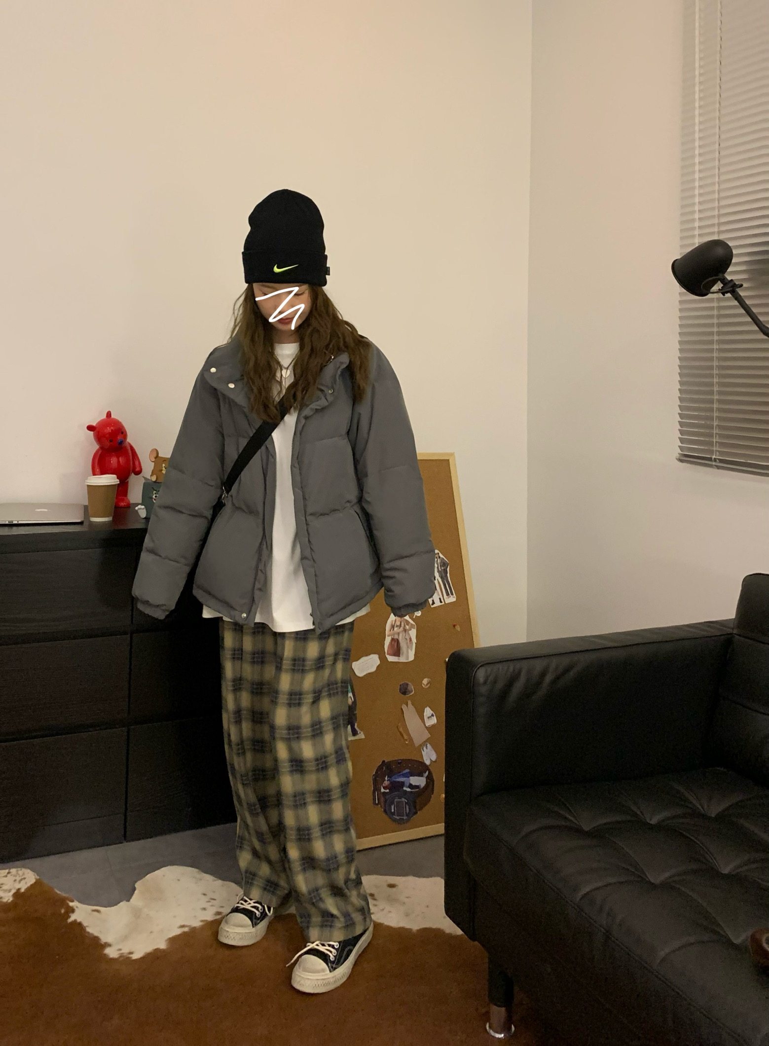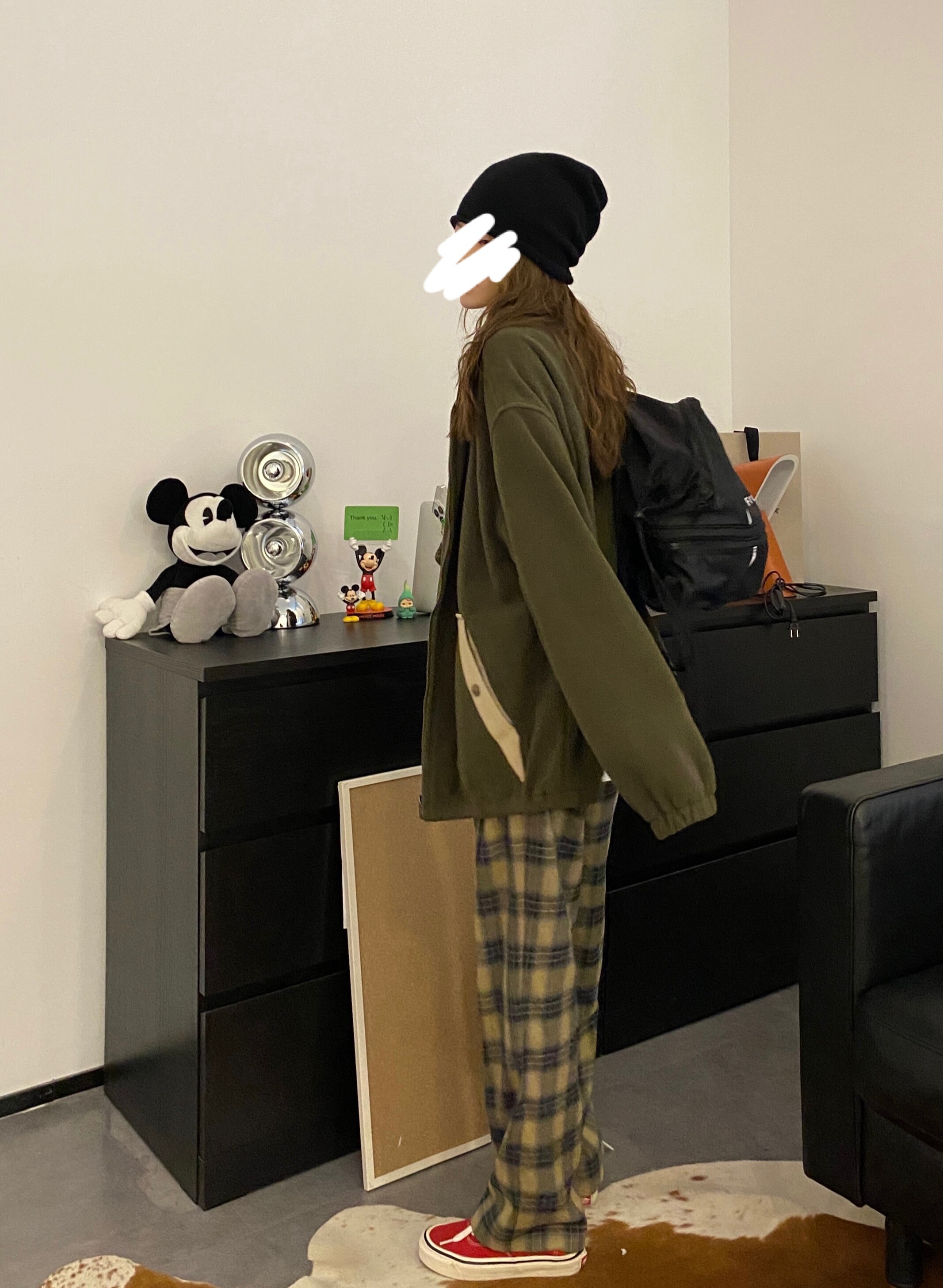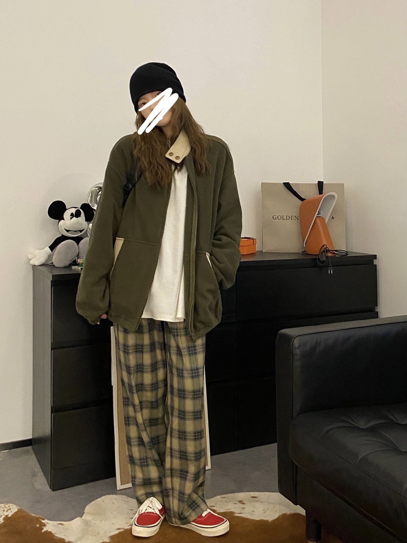 viiwen's autumn and winter limited colors are not out of date every year. Blue-brown plaid straight-leg casual pants show thin plaid pants