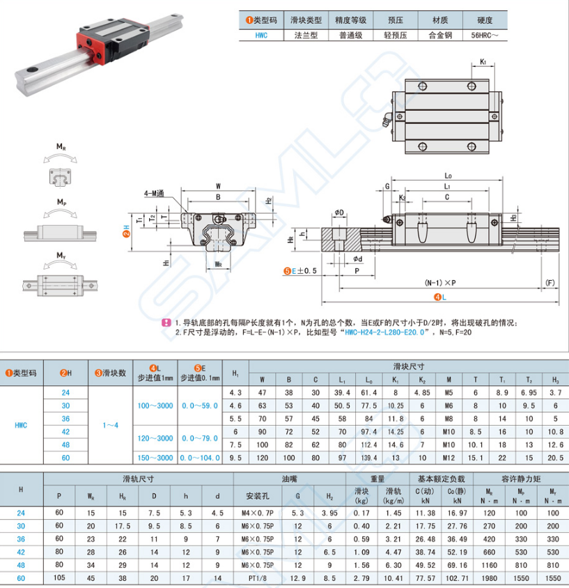 Heavy-duty ball bearing linear guide HWC-H30-1-L100 160220280340400460520