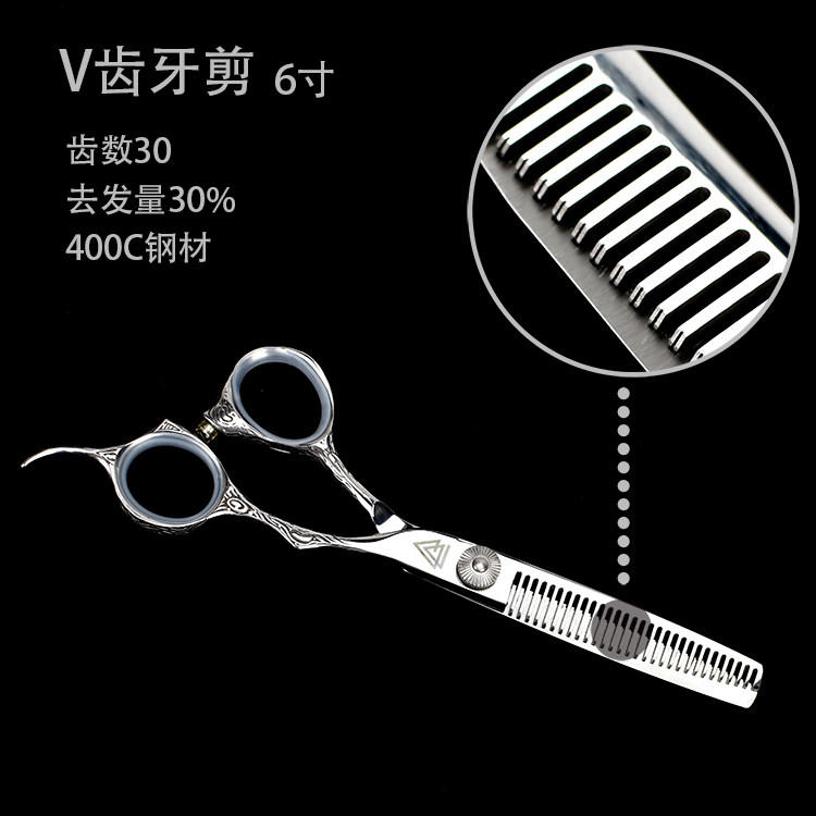 Hairstylist hairstylist Hairdressing Scissors Fine Steel Making 6 Inch No-Mark Dental Cut Flat Cut V Tooth Cut Sharp No Carat Hair