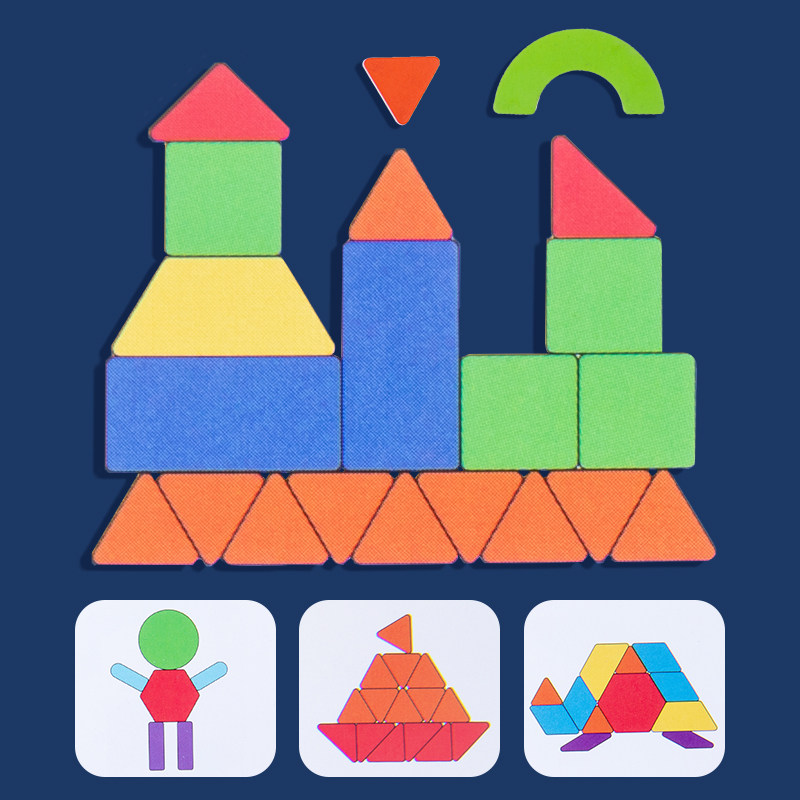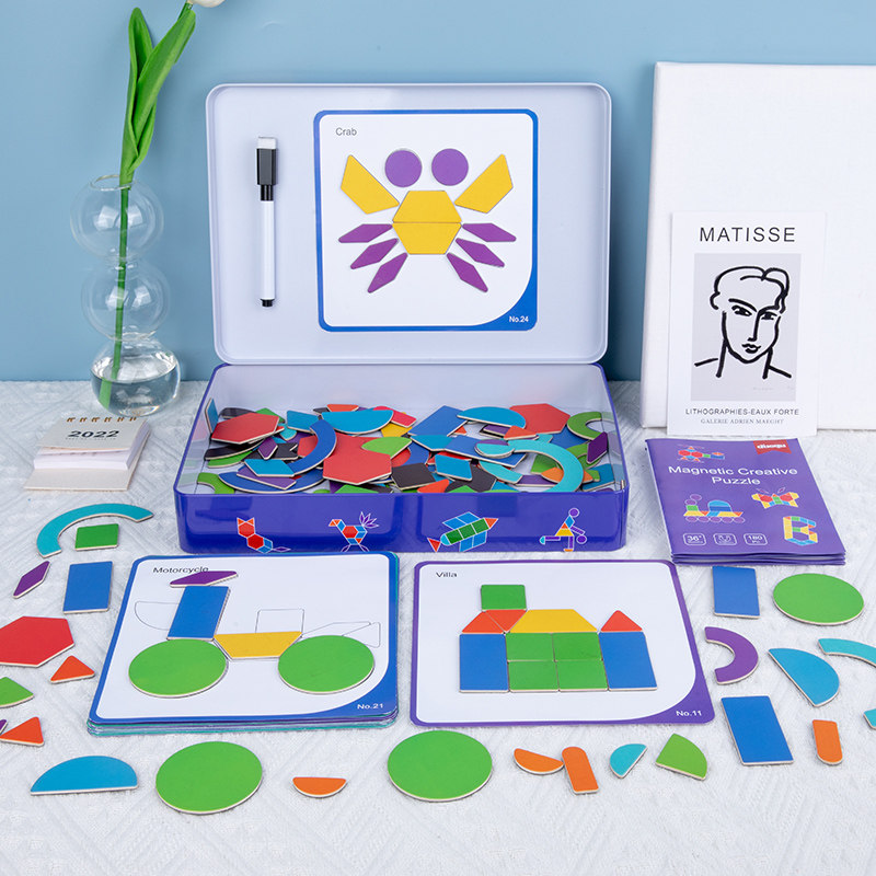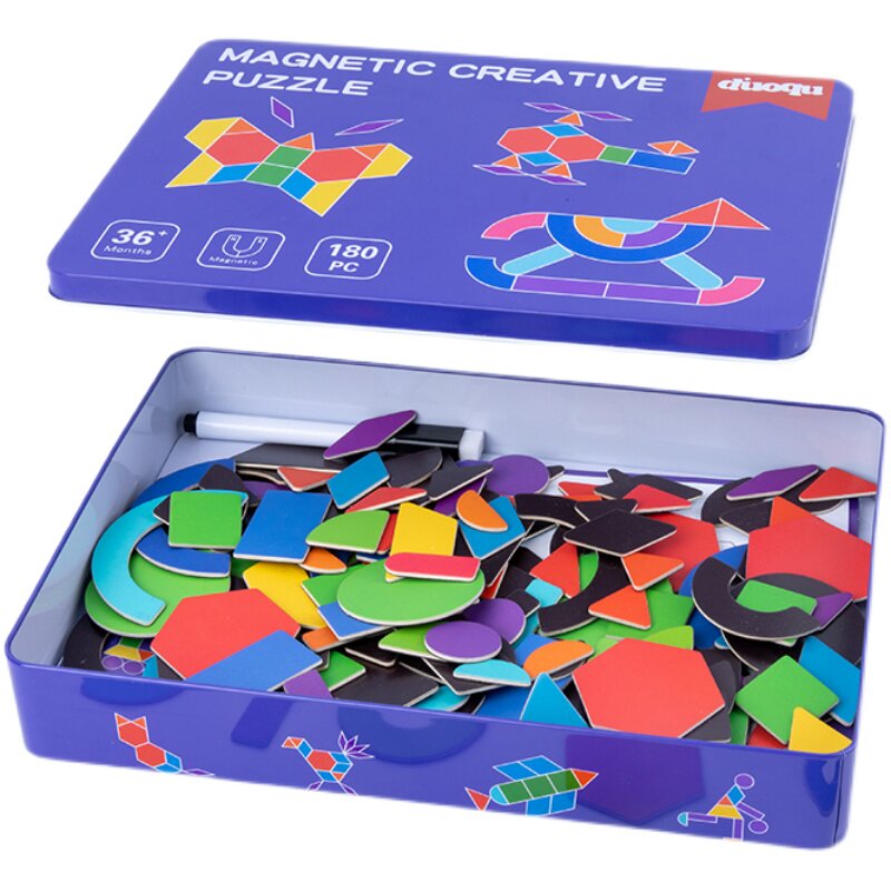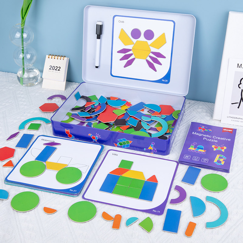 Wooden iron box to incorporate magnetic geometry shape puzzle creative and intelligent early teaching toys for children's teaching tools