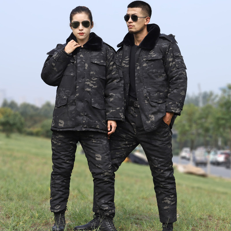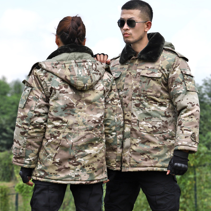 Camouflage coat winter cotton men's mid-length plus velvet thick windproof waterproof warm cotton jacket military cotton coat