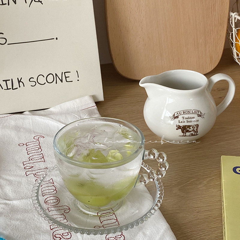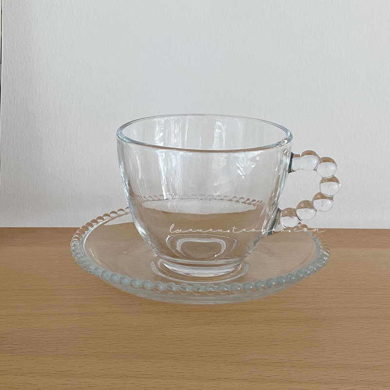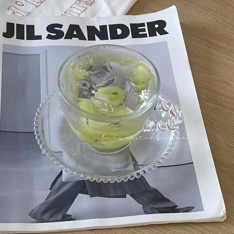 Luaa simple retro beaded glass coffee cup saucer milk tea glass afternoon tea cup