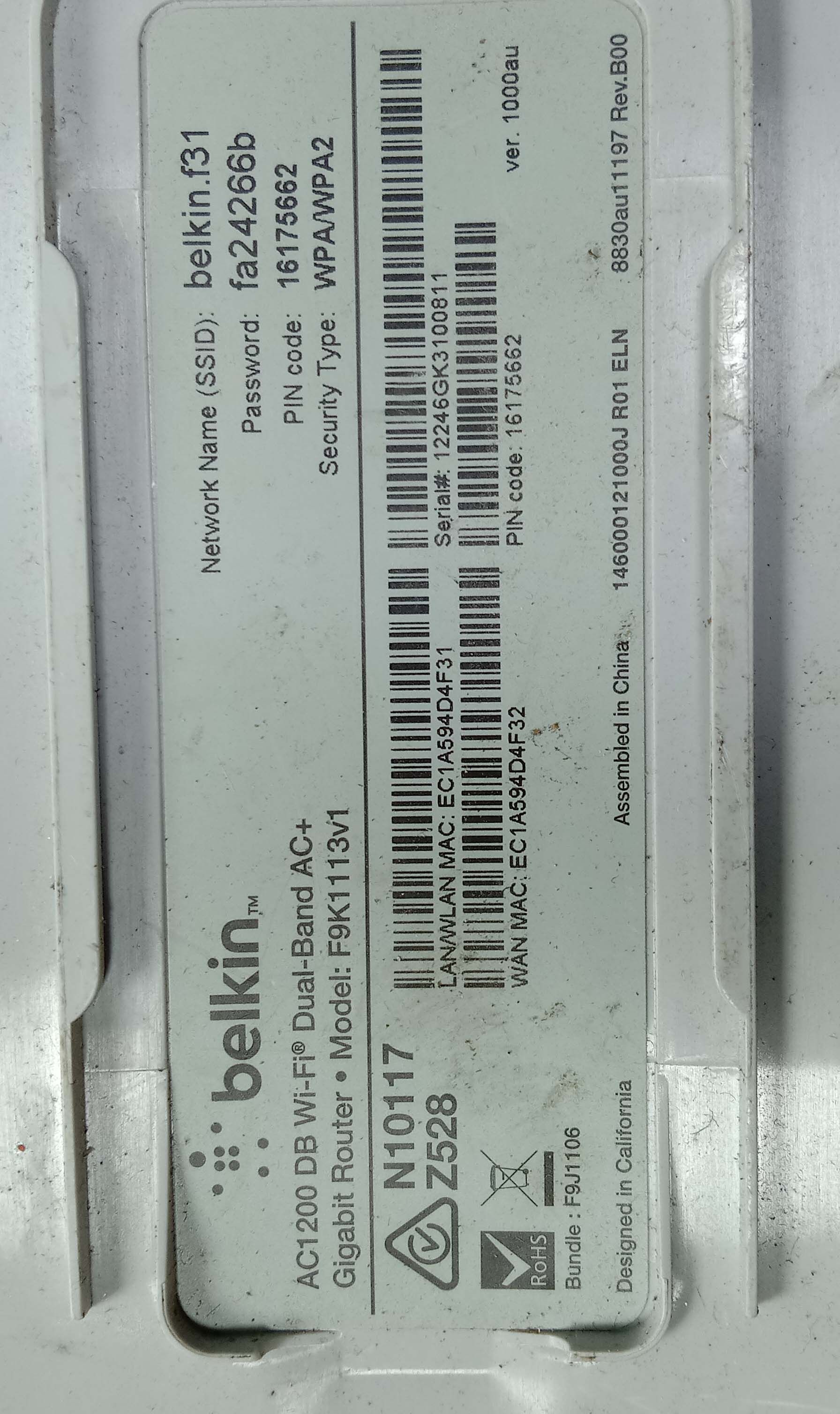 Pack BELKIN Belkin F9K1113 V1 wired Gigabit wireless 1200M dual-band wireless router