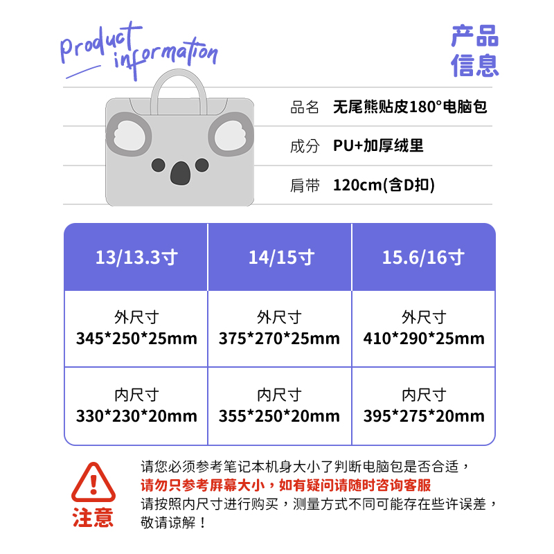 Koala sticker pull rod Koala sticker three-in-one (can be hand-held, cross-body, luggage) (do not take pictures) Please do not buy according to the screen size, please take pictures according to the length, width and thickness of the computer If you have any questions