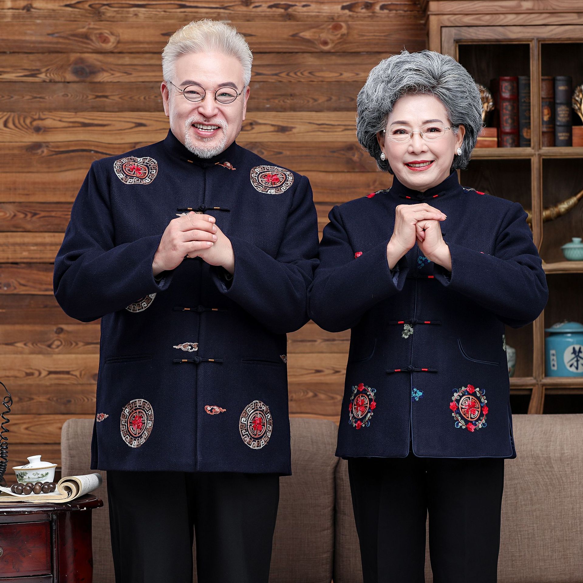 2021 autumn and winter new embroidered Chinese Tang suit elderly casual couples wear long-sleeved blessing character ethnic Chinese style