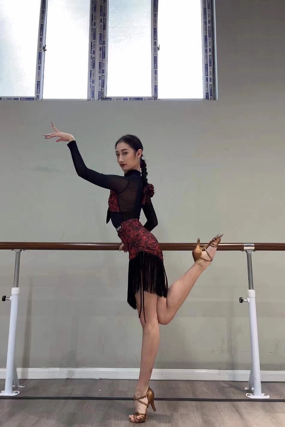 Microminiature dance suit Fairy autumn winter Latin dance suit suit with its own chest cushion delivery belt