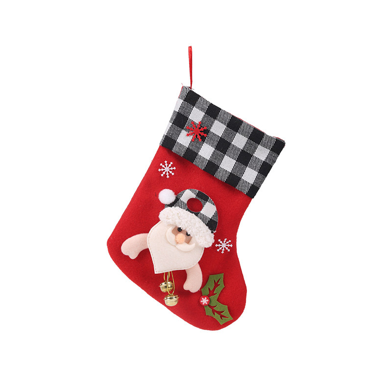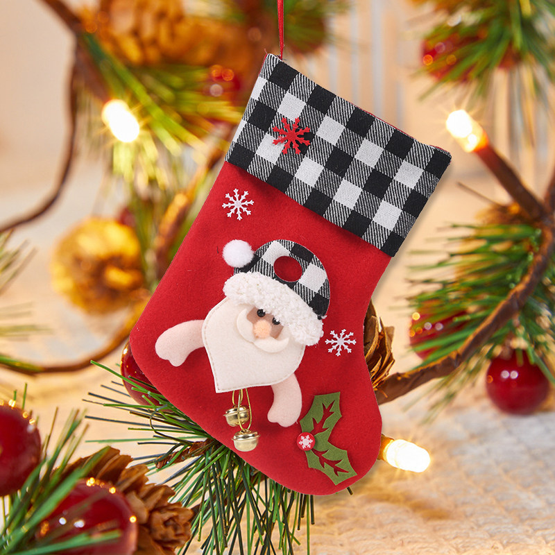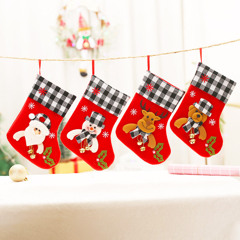 Black and white checkered Christmas socks with bells