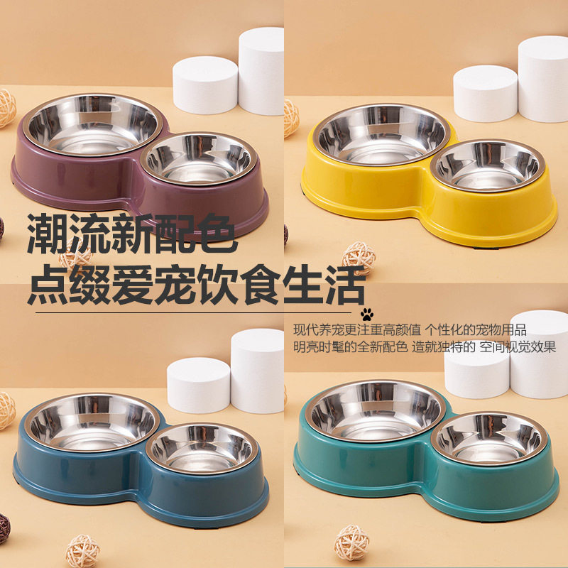 Pet Bowl Feeding water feeding Dual-use Plastic Dog Bowls Cat Bowls Dog Food Basin Round Stainless Steel Double Bowl Easy To Wash Kitty