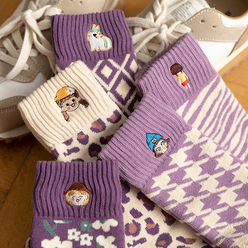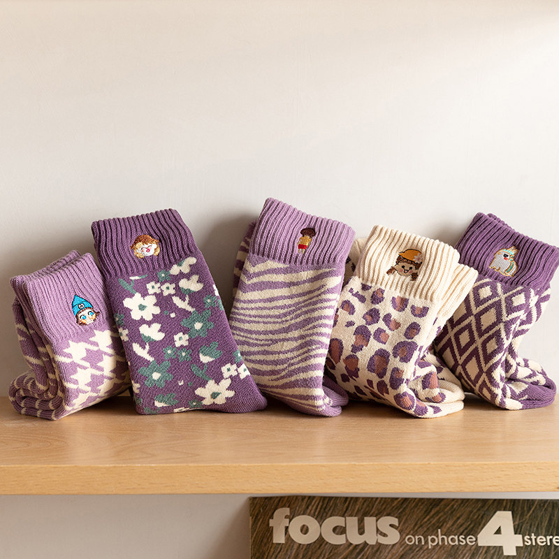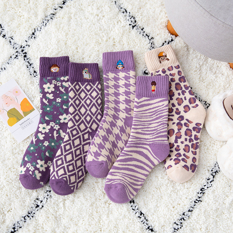 Embroidered gentle purple autumn and winter terry thickened warm ins middle tube