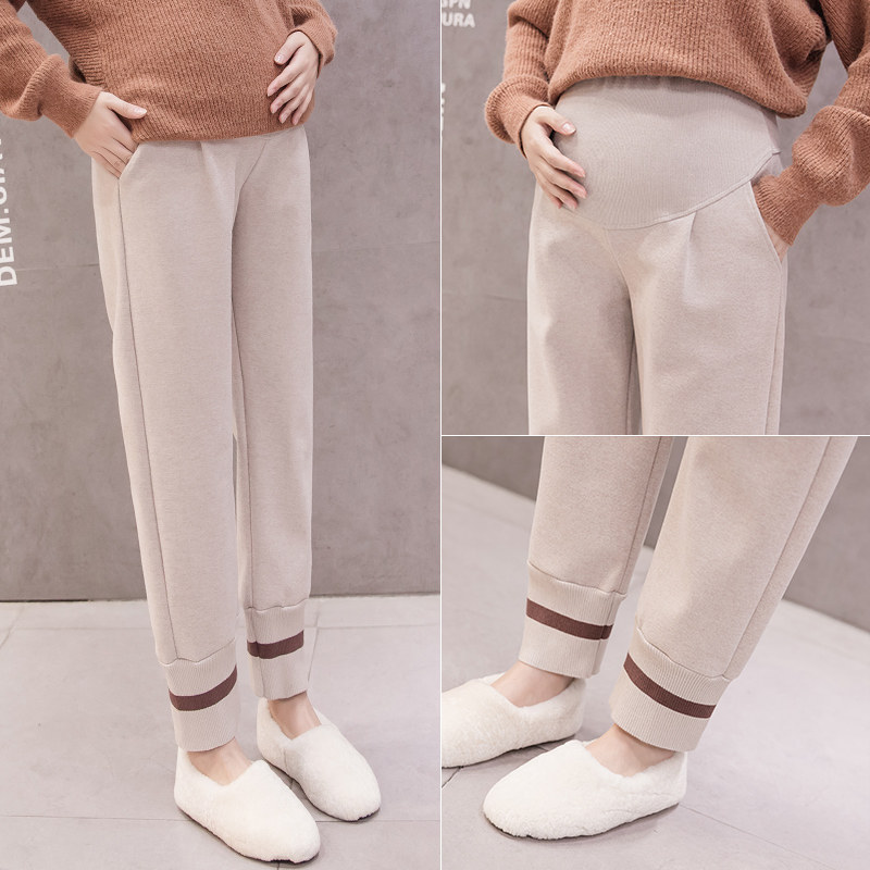 Real shot#pregnant women woolen pants spring and autumn outer wear trousers loose beam feet sports leisure grandma pants autumn and winter clothes