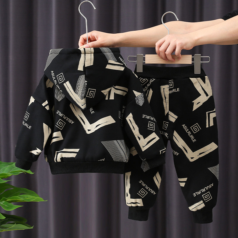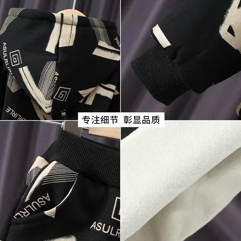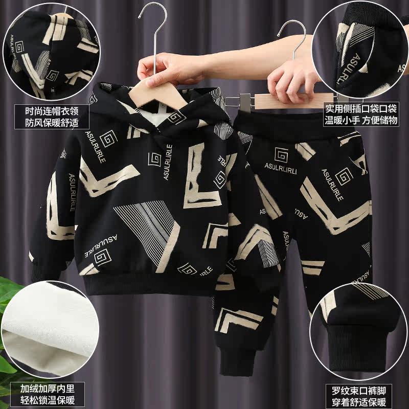 Boy's autumn and winter suit 2021 new children handsome gas plus suede thickened sport Two sets of baby first winter clothes damp